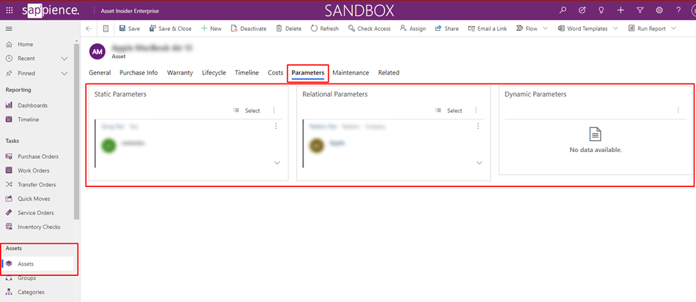 - Each dynamic parameter could be assigned to an asset or asset category/ies.