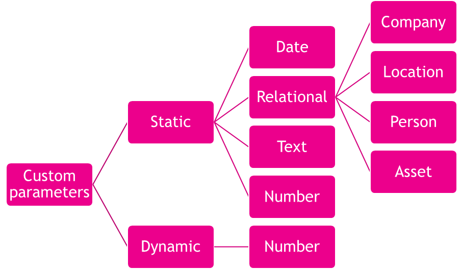 Custom parameters in Asset Insider are classified as it is shown on the diagram below.