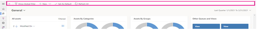 - Show global filter – here one can create a global filter to apply to the current dashboard and modify the information that is shown. The properties for the filter are listed once you click on it. The filters can be saved and re-used.
