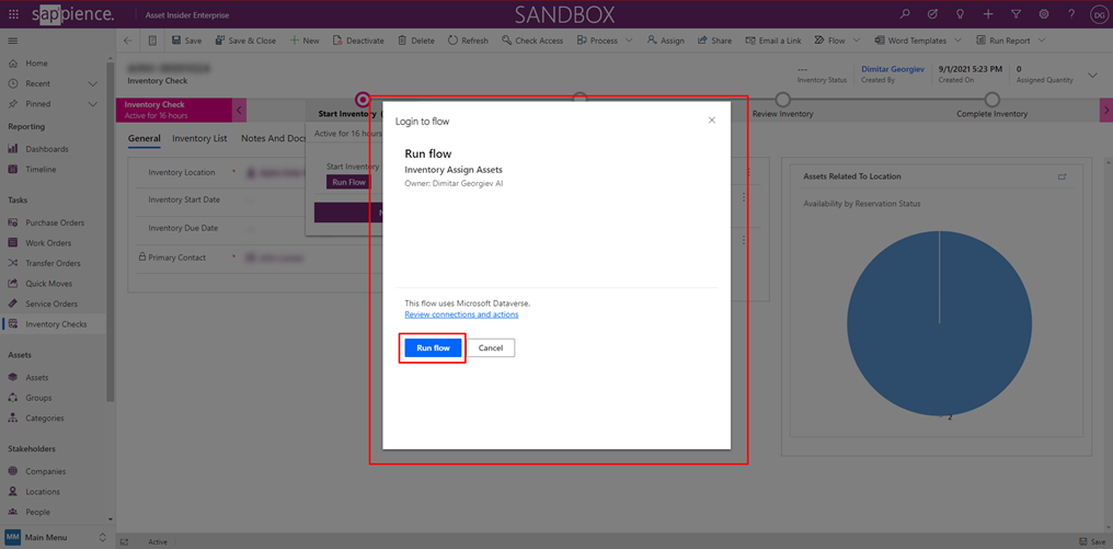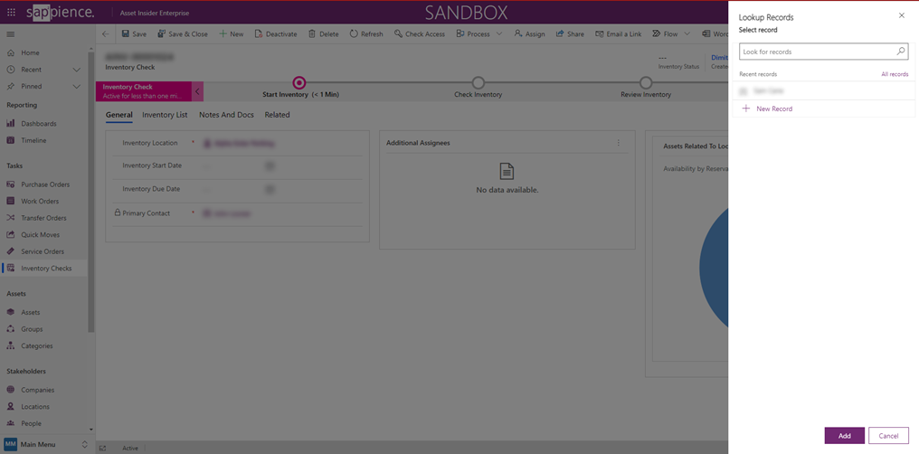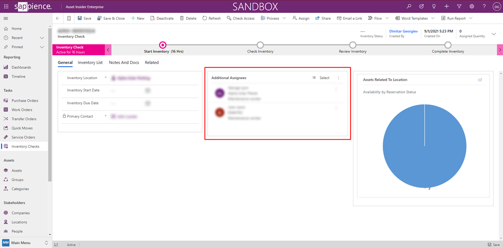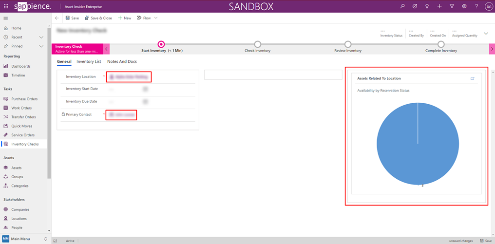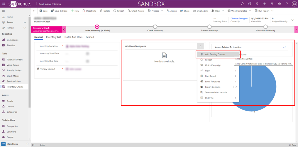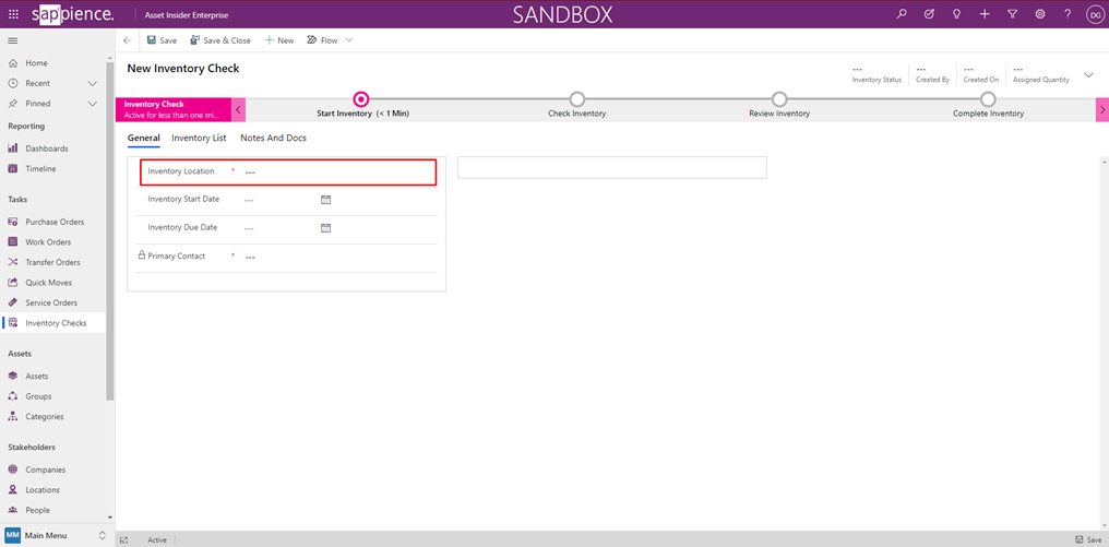- The primary contact of the selected location will be auto-populated as the main responsible person for the inventory check