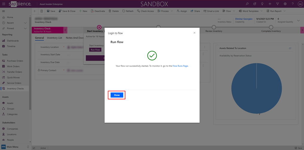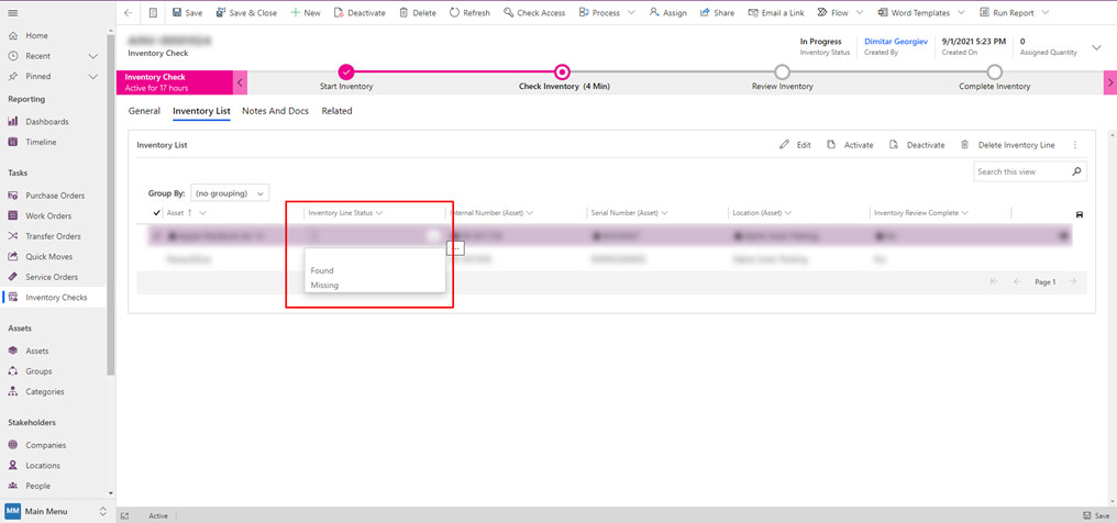 Note: All assets marked as “Found” during the inventory process will be restored to their original state All assets marked as “Missing” will change their Availability status to “Missing”.