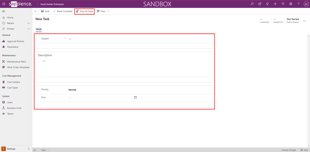 2. Fill in the information that will be used later for the automatic creation of the Work Order and click on the “Save” button