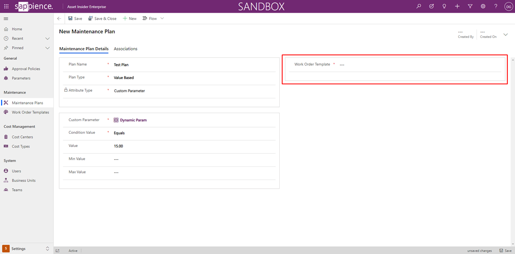 Before setting up a maintenance plan you need to create a Work Order Template that it will use later for automatically generating Work Orders based on this template.